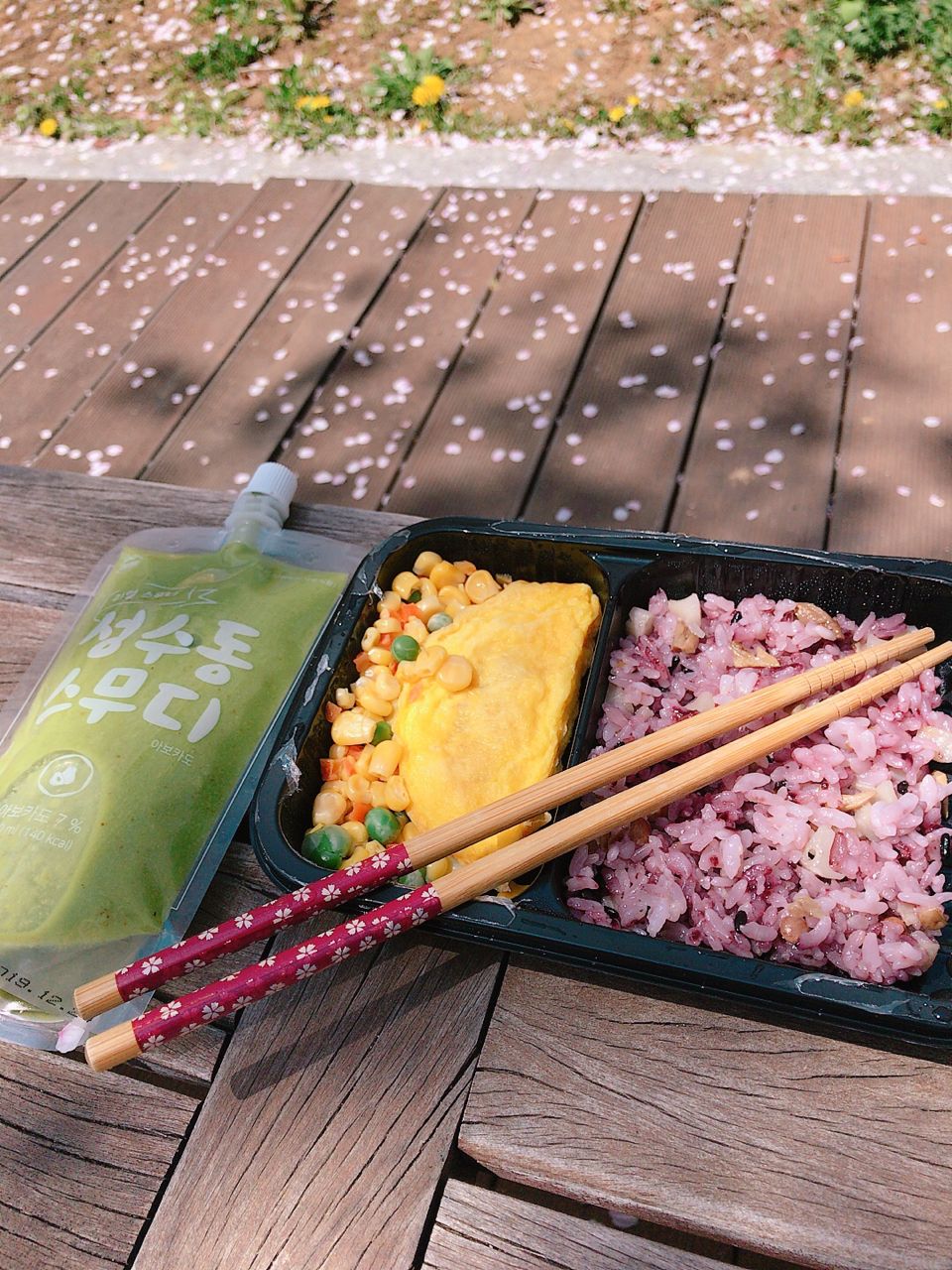 마침 벚꽃이 피어서 그 아래에서 먹었습니다. ㅎㅎ