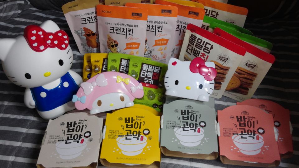 다이어트 열심히 하고 있어요. 밥이곤약, 단백칩, 크런치킨 3종류로 샀는데 하나하나 먹어볼 생각 하니 즐겁네요^^