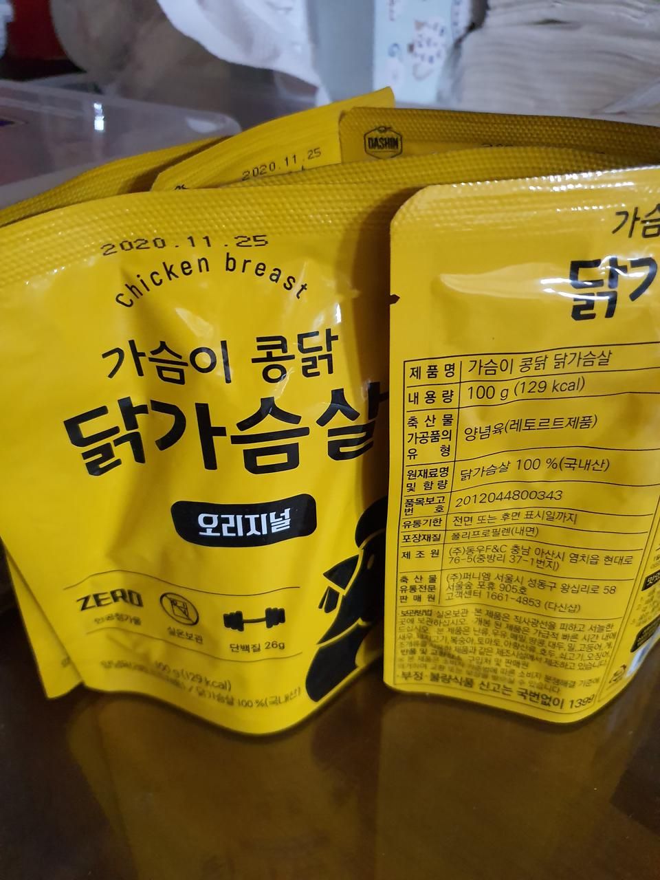 우선 닭냄새가 심하지 않아 좋아요~닭가슴살 치고 많이 부드러워서 간식처럼 그냥 먹어도 좋네요