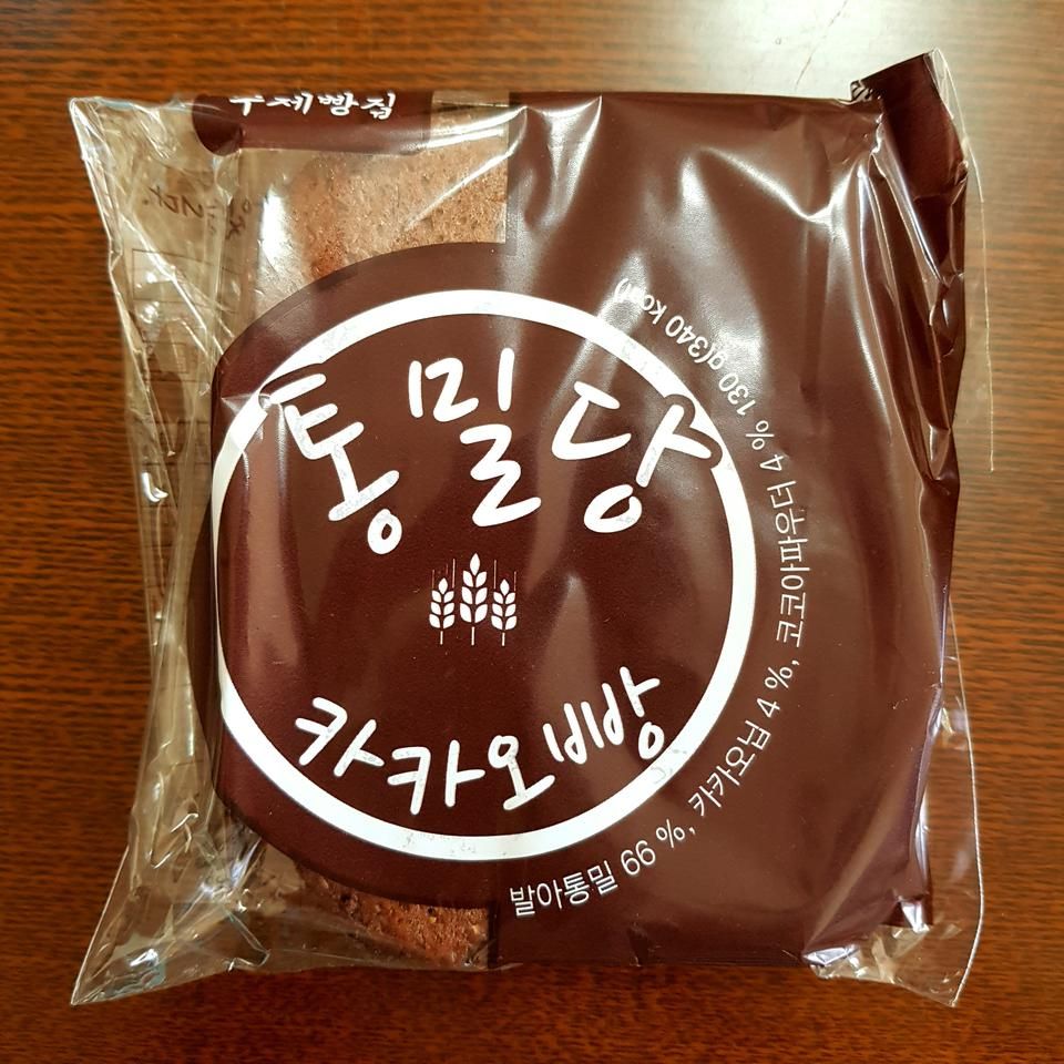 달진않은데 초코향과 카카오맛이 나는 빵이에요. 통밀빵이라 약간의 신맛이나는데 카카오랑 어우러져서 독특한 맛이 나는것 같아요!
