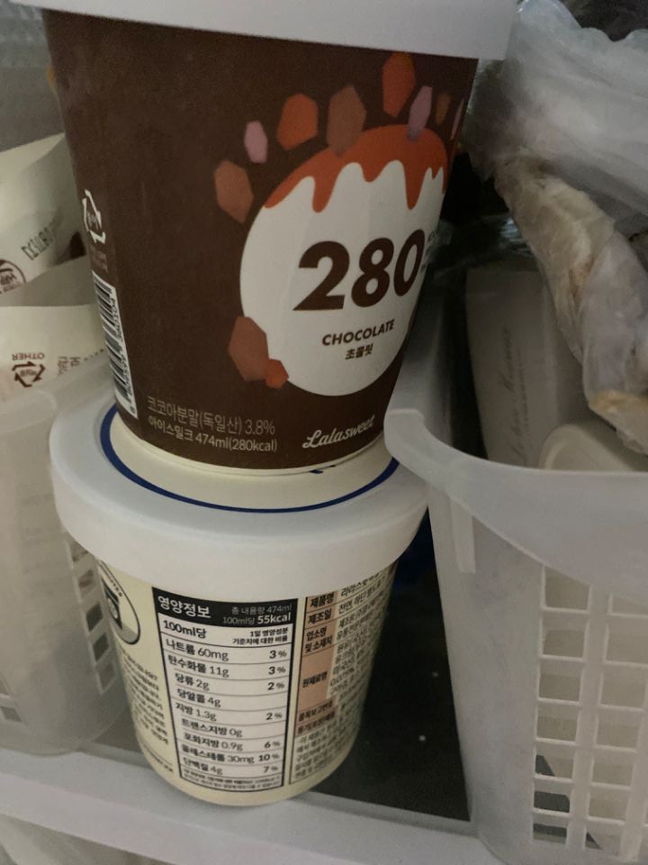 아직 요거트 맛은 먹어보지 않았구요. 초콜릿 바닐라 두 가지는 먹어봤어요. 스키니피그 초코에 비해 라라스윗 초코가 더 단단한 느낌이고 부드러움이 살짝 덜했지만, 라라스윗이 칼로리가 약간 더 낮은 걸로 알고 있어요! 솔직히 저질러라 아이스크림 치고는 둘다 엄청 맛있구요!! 칼로리 걱정되시면 라라스윗이 더 나을 것 같고 부드럽고 쫀쫀한 아이스크림 맛을 원하시면 스키니피그 초코 추천이요! 라라스윗 바닐라는 투게더 맛을 예상했는데 약간 다른게 섞여있어요 빵또아 알맹이 맛이랑 비슷한 느낌이예요. 맛있었어요.