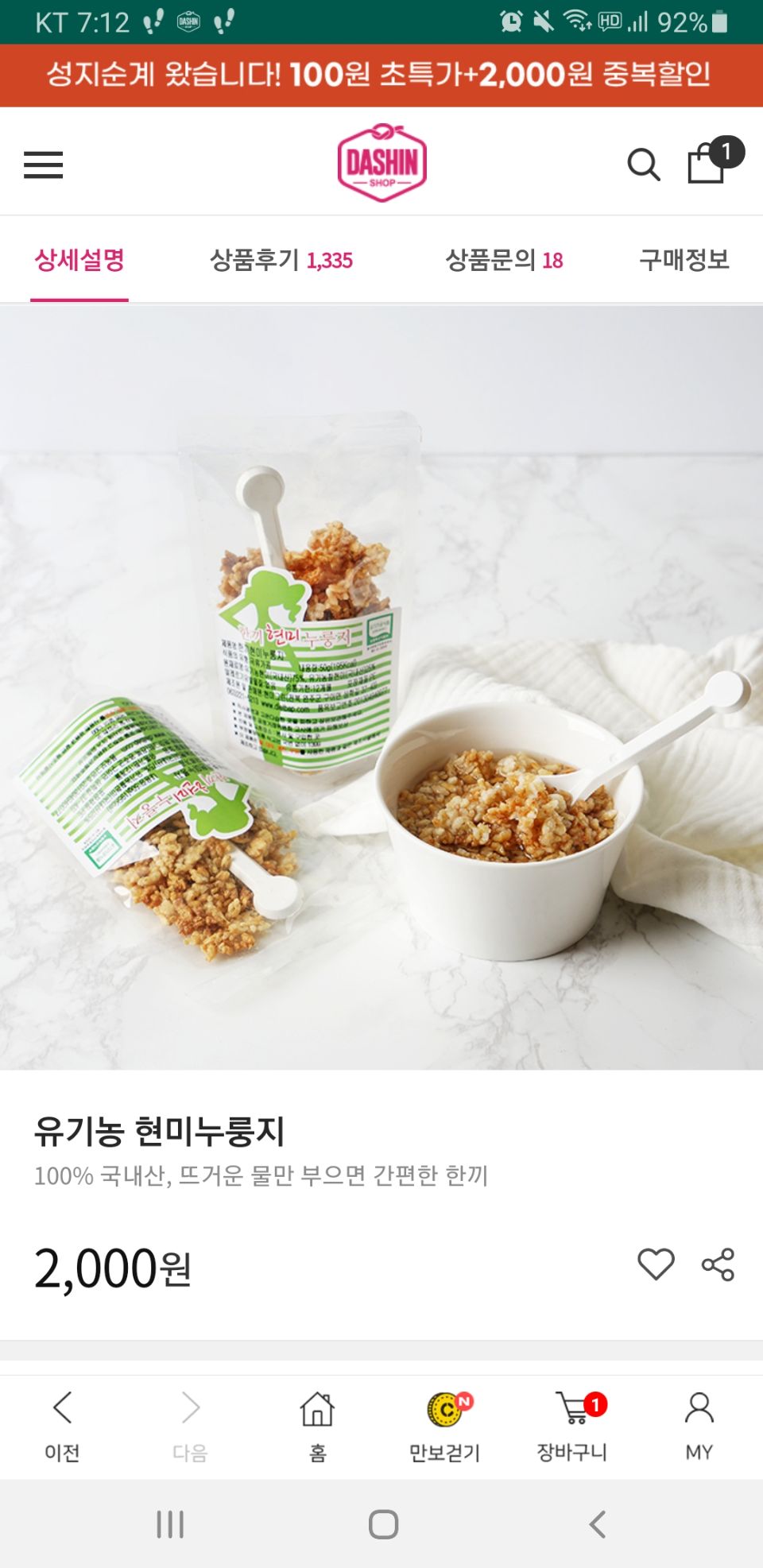 100% 국내산, 뜨거운 물만 부으면 간편한 한끼