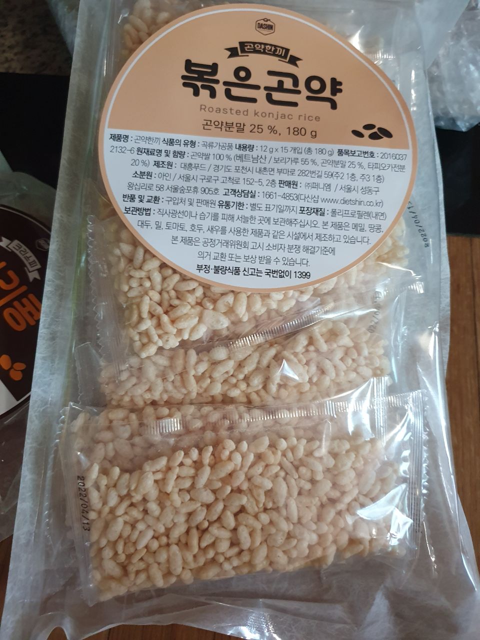 배고픔 참지 마세요! 100% 곤약쌀을 기름없이 볶아 바삭해요.