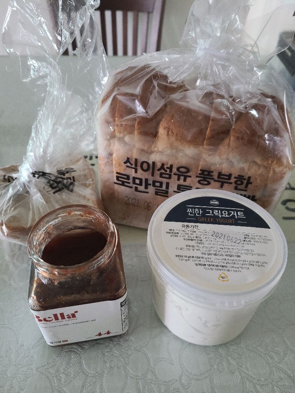 통밀빵에 요거트랑 잼이랑 발라서 먹으면