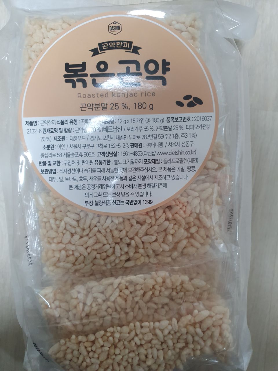 배고픔 참지 마세요! 100% 곤약쌀을 기름없이 볶아 바삭해요.