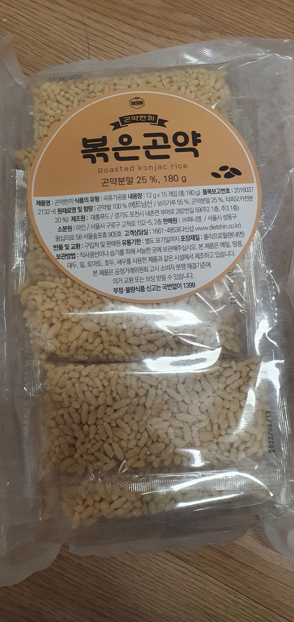 배고픔 참지 마세요! 100% 곤약쌀을 기름없이 볶아 바삭해요.