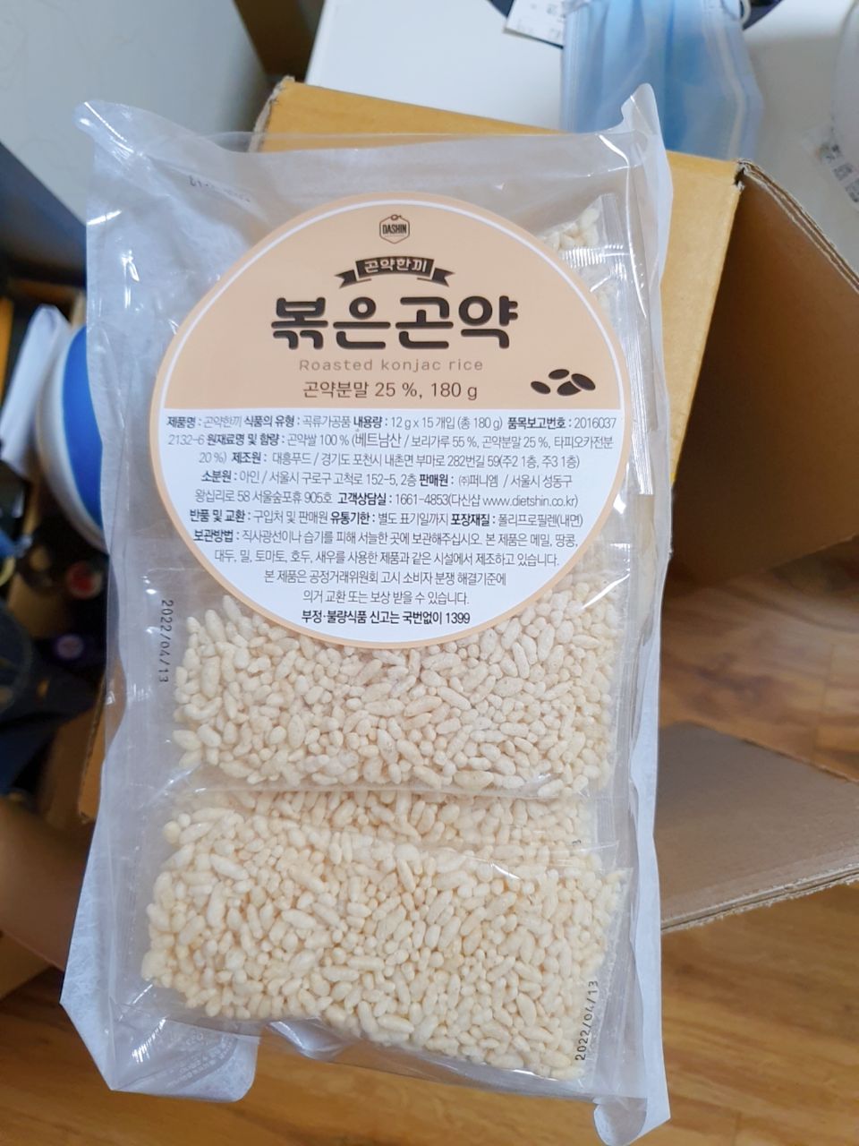 배고픔 참지 마세요! 100% 곤약쌀을 기름없이 볶아 바삭해요.