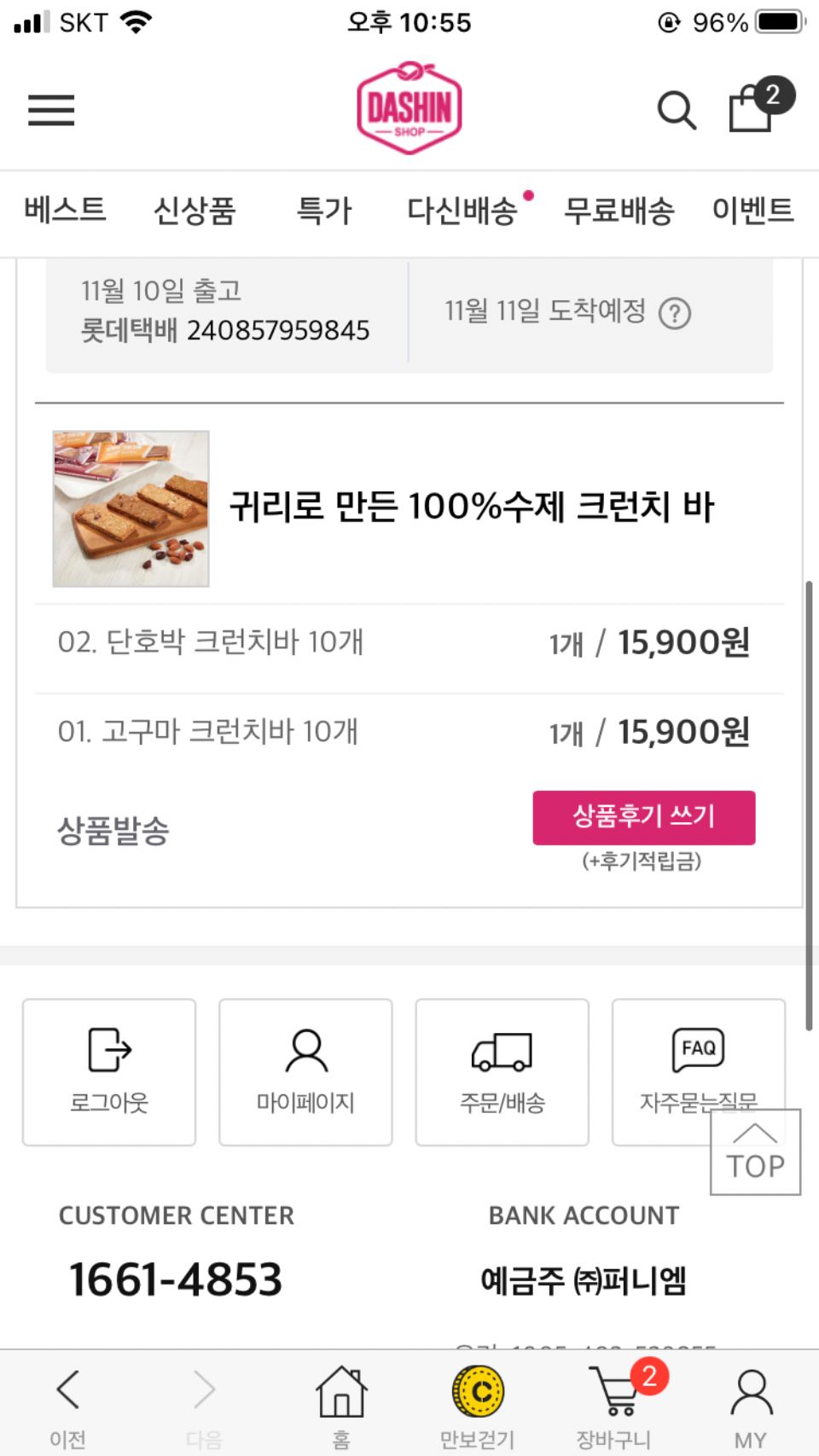 주문번호 입력 후에 조회가 가능합니다.