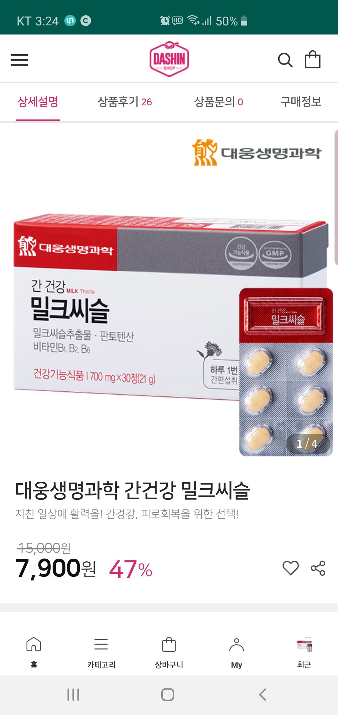 ▶ 대웅생명과학 간건강 밀크씨슬