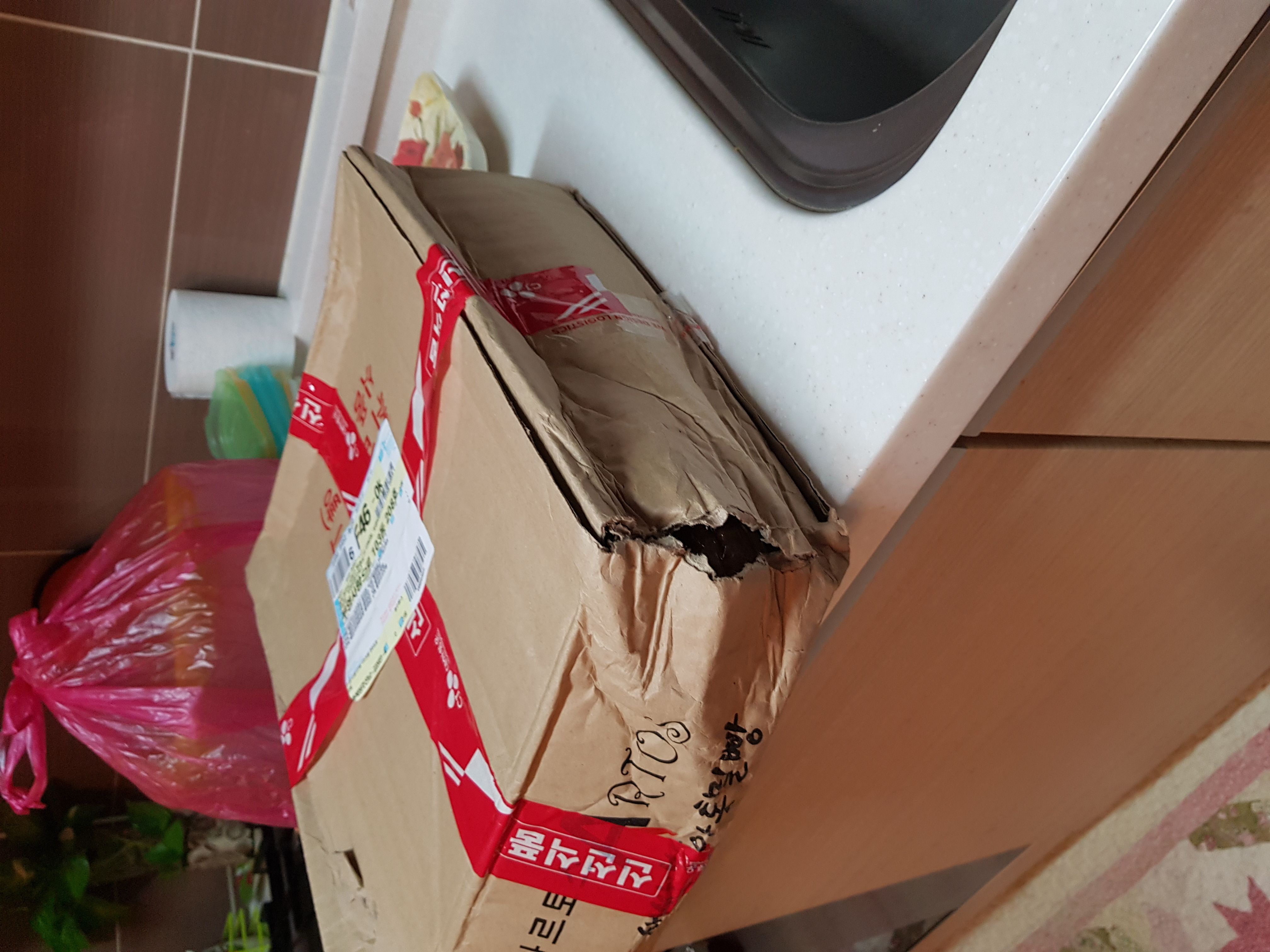 한두번도 아니구. 박스 포장 다 터져