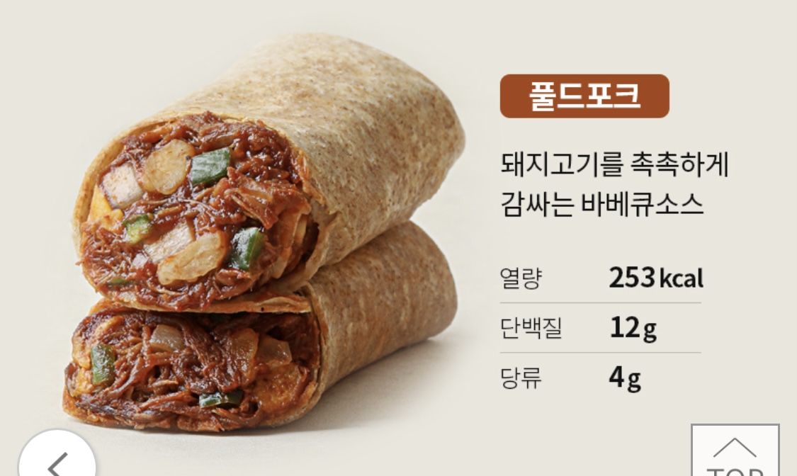 100% 통밀 또띠아, 단백질 토핑, 저당소스
