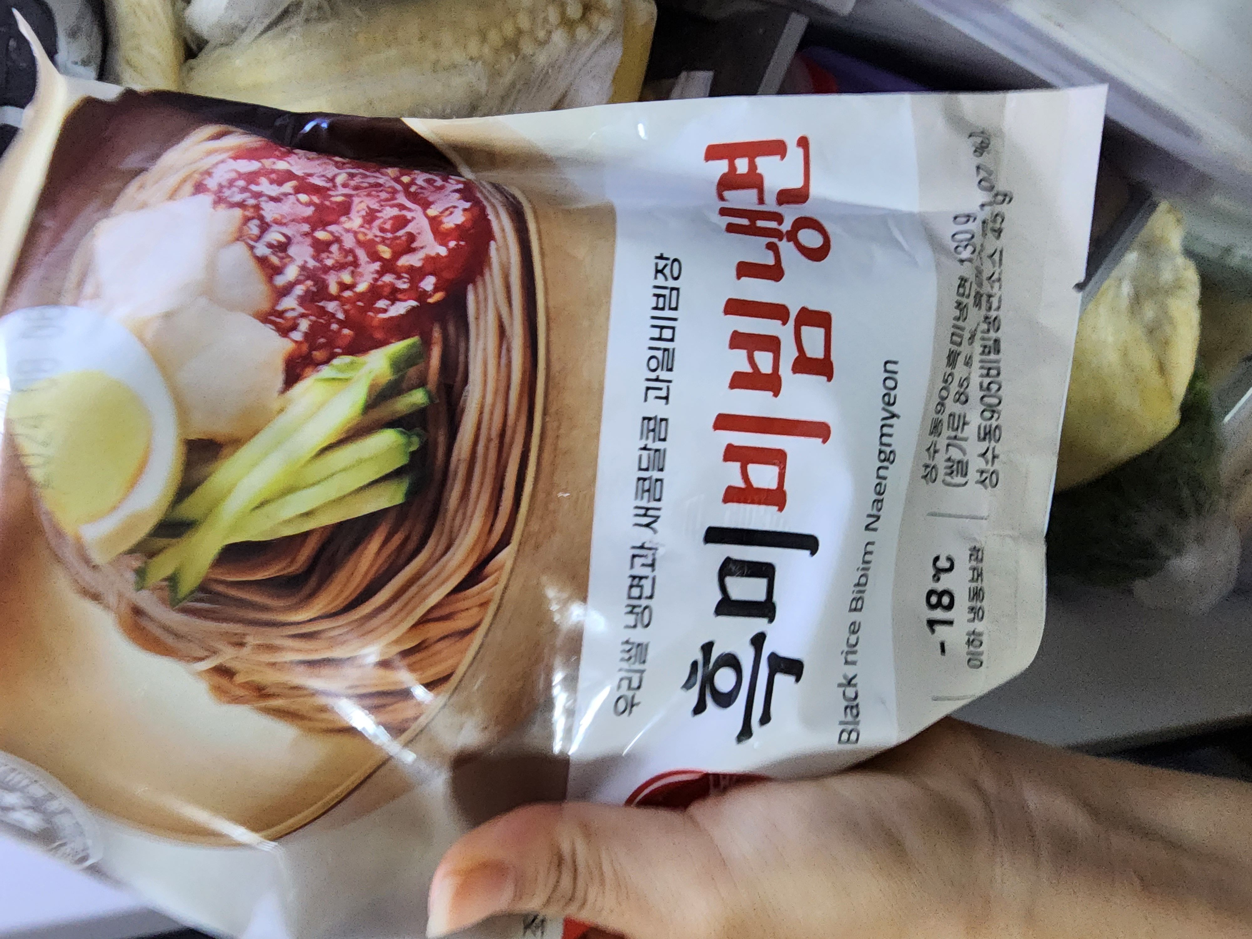 쫄깃한 흑미쌀면과 매콤새콤 과일숙성 소스
