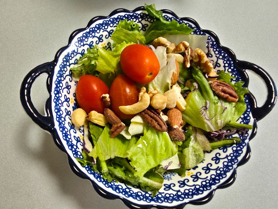 샐러드에 닭가슴살 2종류 더해서 먹고있아요. 소스는 최소화! 양념이 되어 있는 닭가슴살이라...