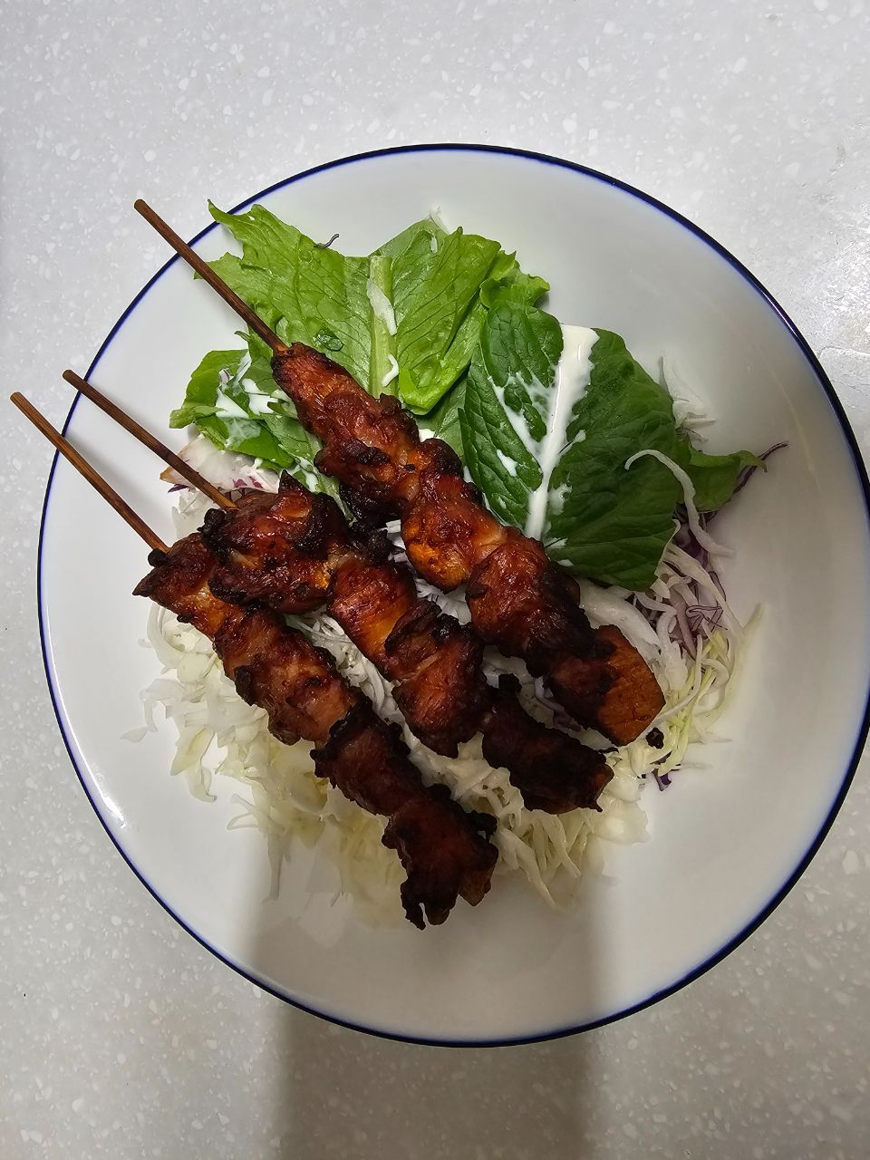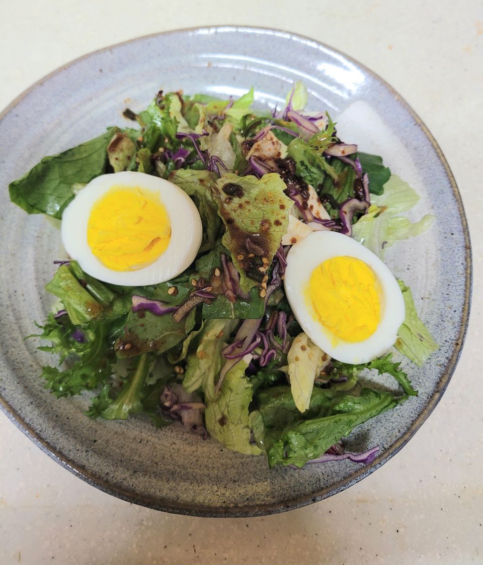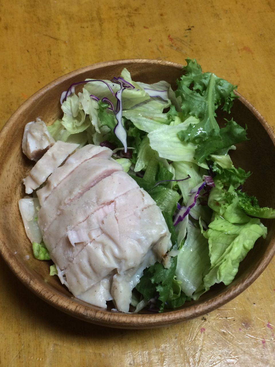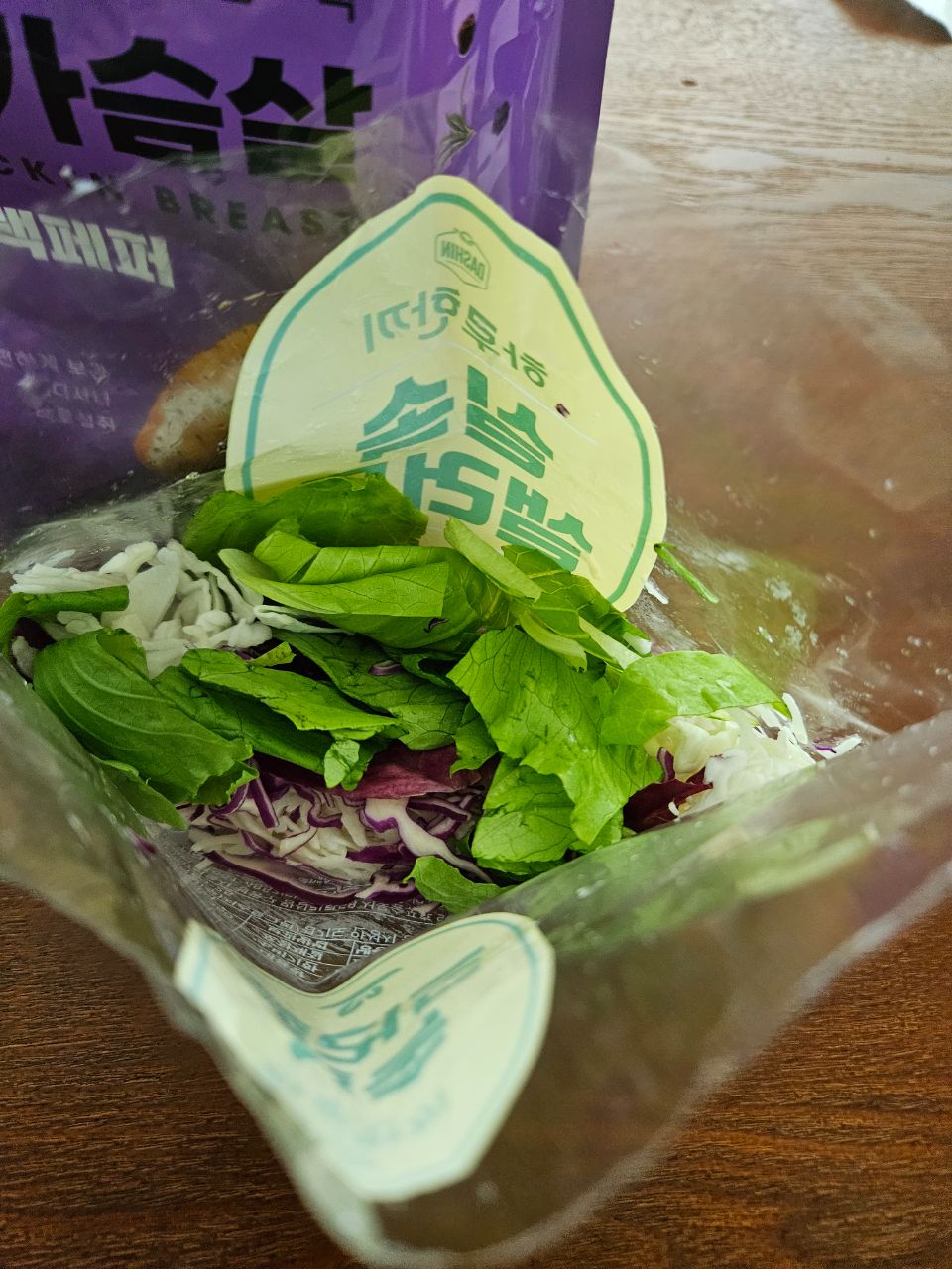 샐러드에 닭가슴살 2종류 더해서 먹고있아요. 소스는 최소화! 양념이 되어 있는 닭가슴살이라...