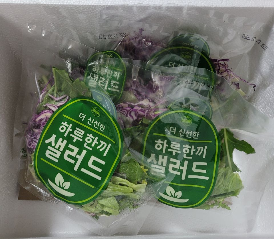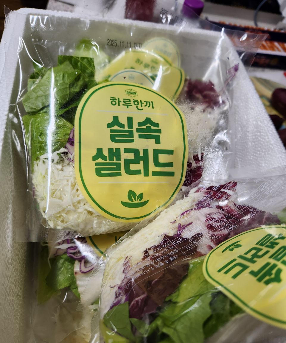 하루한끼샐러드로 먹다가 초록잎채소는 적지만 대신 양배추가 더많은 실속도 괜찮은듯해 요즘은 ...