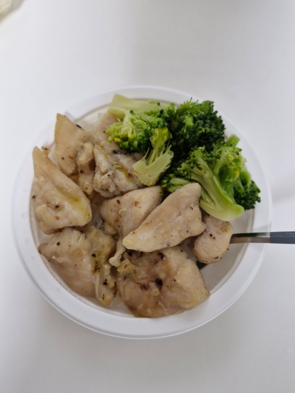 점심 식단으로 양배추찜,현미잡곡,소스 닭가슴살에 반찬2종(주로 야채 위주)으로 먹고 있어요...