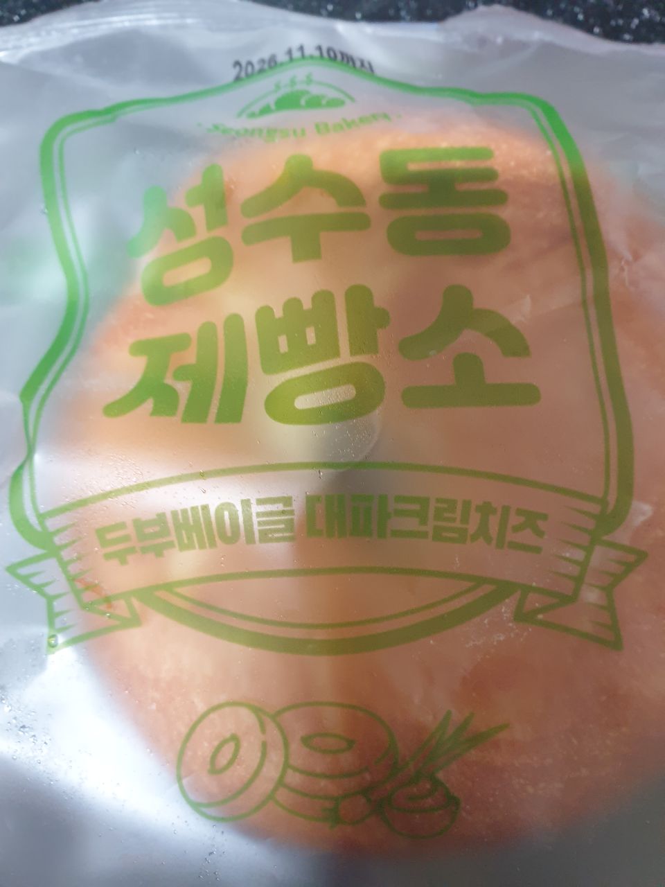 성수동제빵소 두부베이글 대파크림치즈:총 내용량 100 g (285 kcal) 나트륨 590 mg (30%) 탄수화물 42 g (13%) 당류 6 g (6%) 식이섬유 6 g (24%) 에리스리톨 0.21 g 지방 9 g (17%) 트랜스지방 0 g 포화지방 5 g (33%) 콜레스테롤 25 mg (8%) 단백질 12 g (22%)곡류가공품1[멥쌀(국산), 글루텐(프랑스산), 식물성크림, 혼합제제(변성전분, 설탕분말), 덱스트린], 치즈 13.68 %[미국산/살균우유, 유크림, 식염, 로커스트콩검, 배양액], 곡류가공품2(벨기에산), 두부 3.26 %[대두(국산 100 %) 99.97 %], 설탕,가공버터, 마요네즈, 양파, 소스, 혼합제제1[글리신, 글루코노-δ-락톤, 시클로덱스트린, 유화제], 곡류가공품3, 가당연유, 곡류가공품4, 혼합제제2[효모, 소르비탄지방산에스테르, 비타민C], 혼합제제3[밀가루, 글리세린디아세틸주석산지방산에스테르, 포도당, 스테아릴젖산나트륨, 비타민C, 효소혼합제제(아밀라아제, 헤미셀룰라아제, 프로테아제)], 대파 0.25 %[중국산/대파 100 %], 에리스리톨 [밀, 우유, 대두, 알류(계란) 함유]