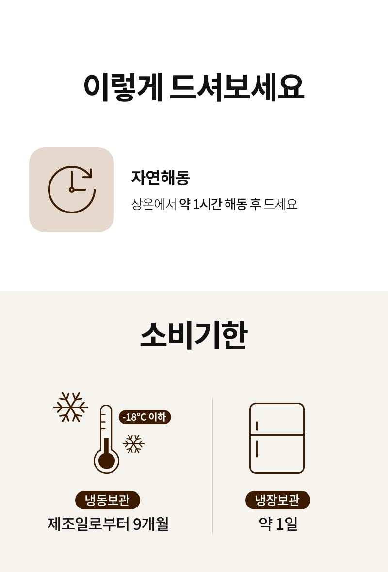 ※식품의 특성상 고객 안전을 위해 재판매하지 않고 폐기하며, 이로 인해 신선/냉동식품을 포함해 모든 식품은 단순변심에 의한 교환, 반품이 불가합니다.