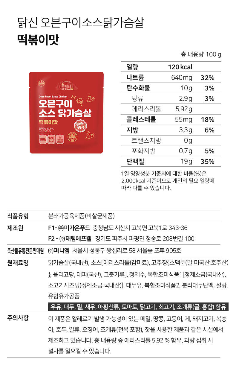 (1팩 1,980원) 국내산 닭가슴살과 마성의 특제 소스 만남!