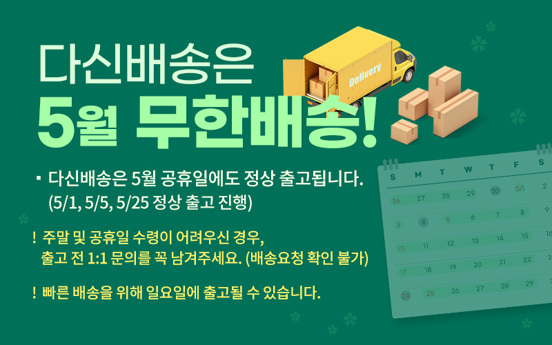 - 출고지와 배송지 정보가 동일한 경우, 2회 이상 나누어 주문하셔도 빠른 배송을 위해 합배송으로 출고될 수 있습니다.