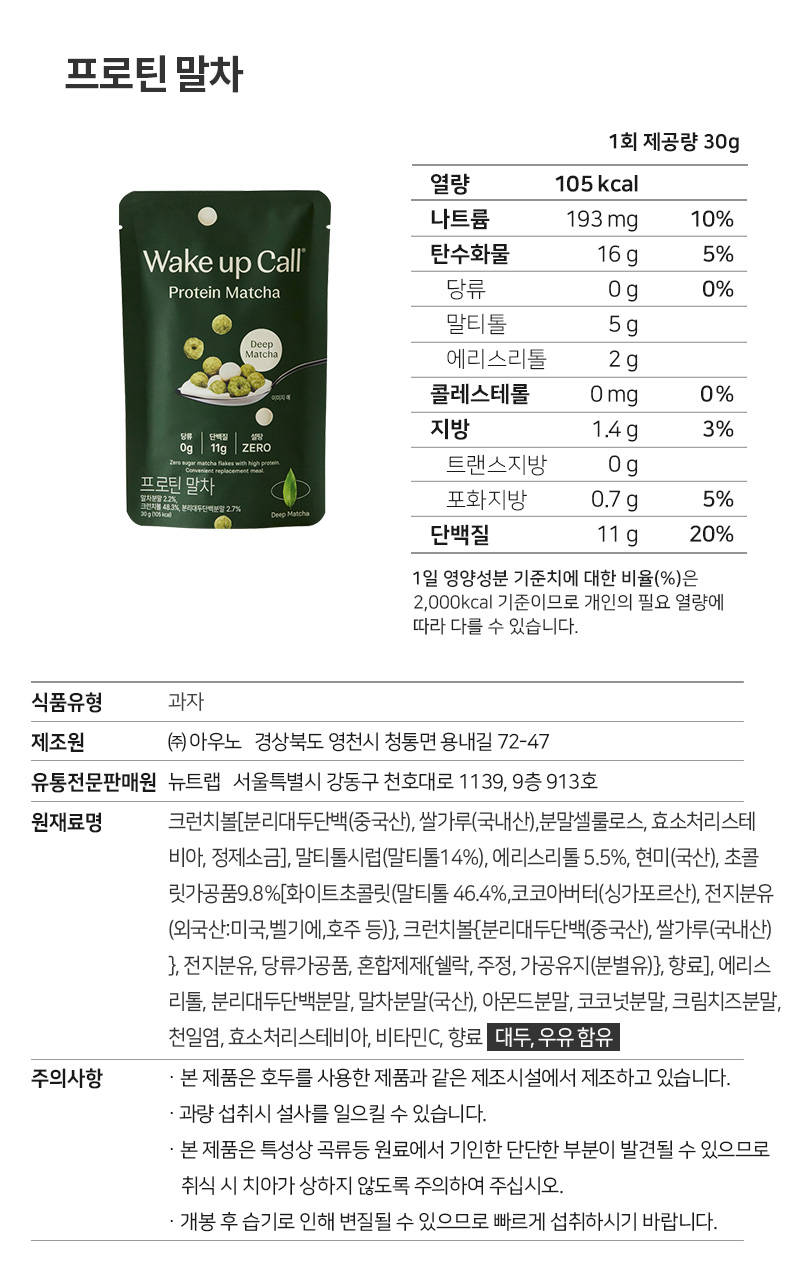 웨이크업콜의 무설탕 프로틴 시리얼은 건강한 식단 관리를 원하는 분들에게 적합한 제품입니다....