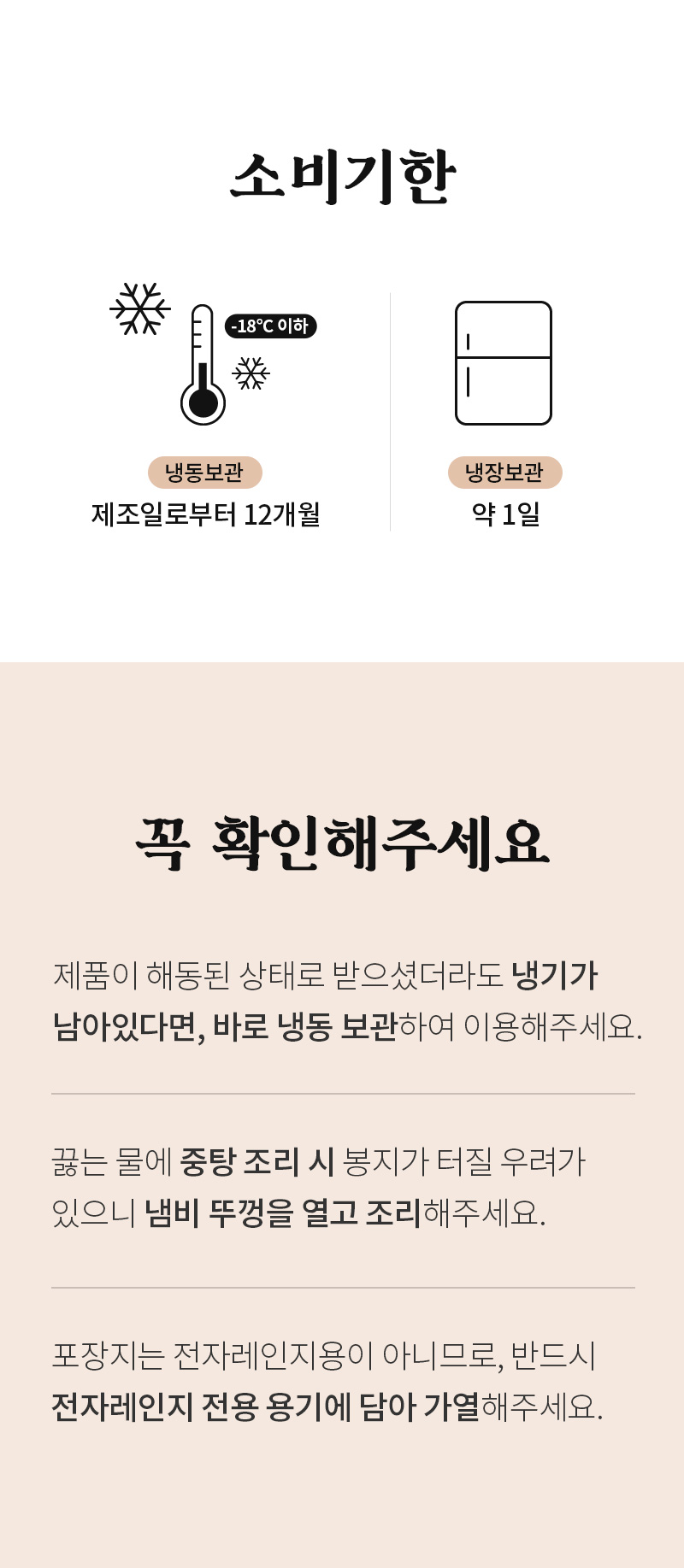 ※식품의 특성상 고객 안전을 위해 재판매하지 않고 폐기하며, 이로 인해 신선/냉동식품을 포함해 모든 식품은 단순변심에 의한 교환, 반품이 불가합니다.