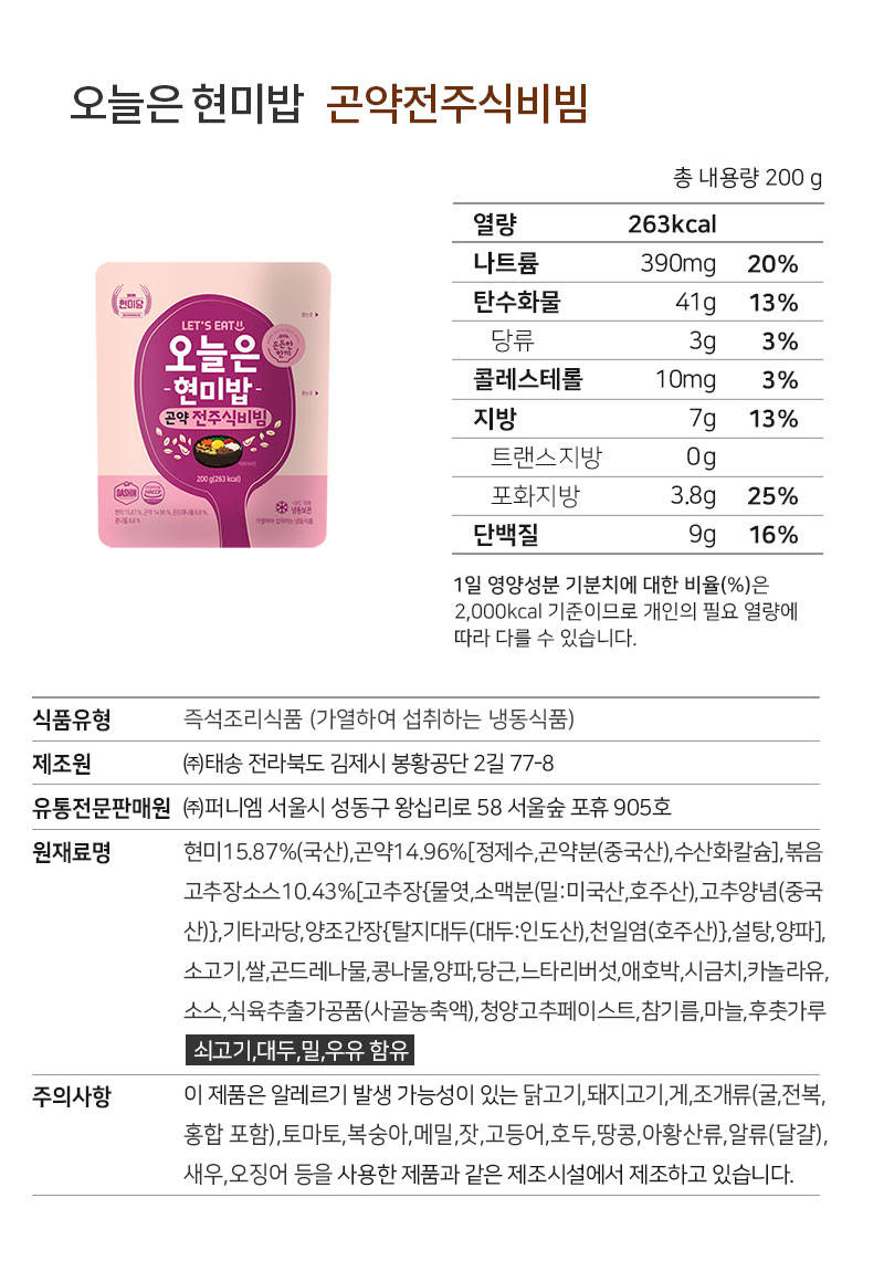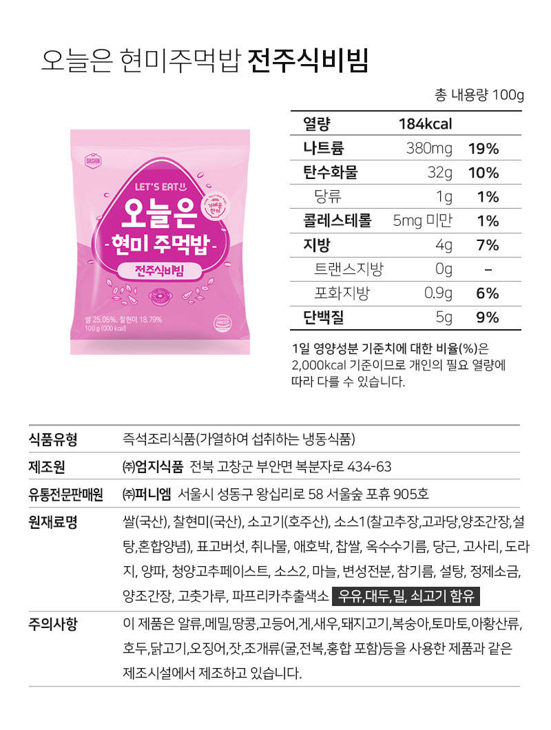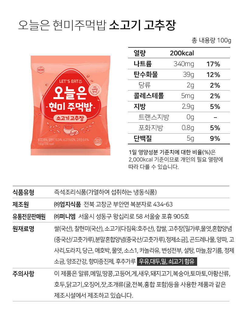 *이 페이지에서만* 100% 국내산 찰현미로 만든 저당 식단