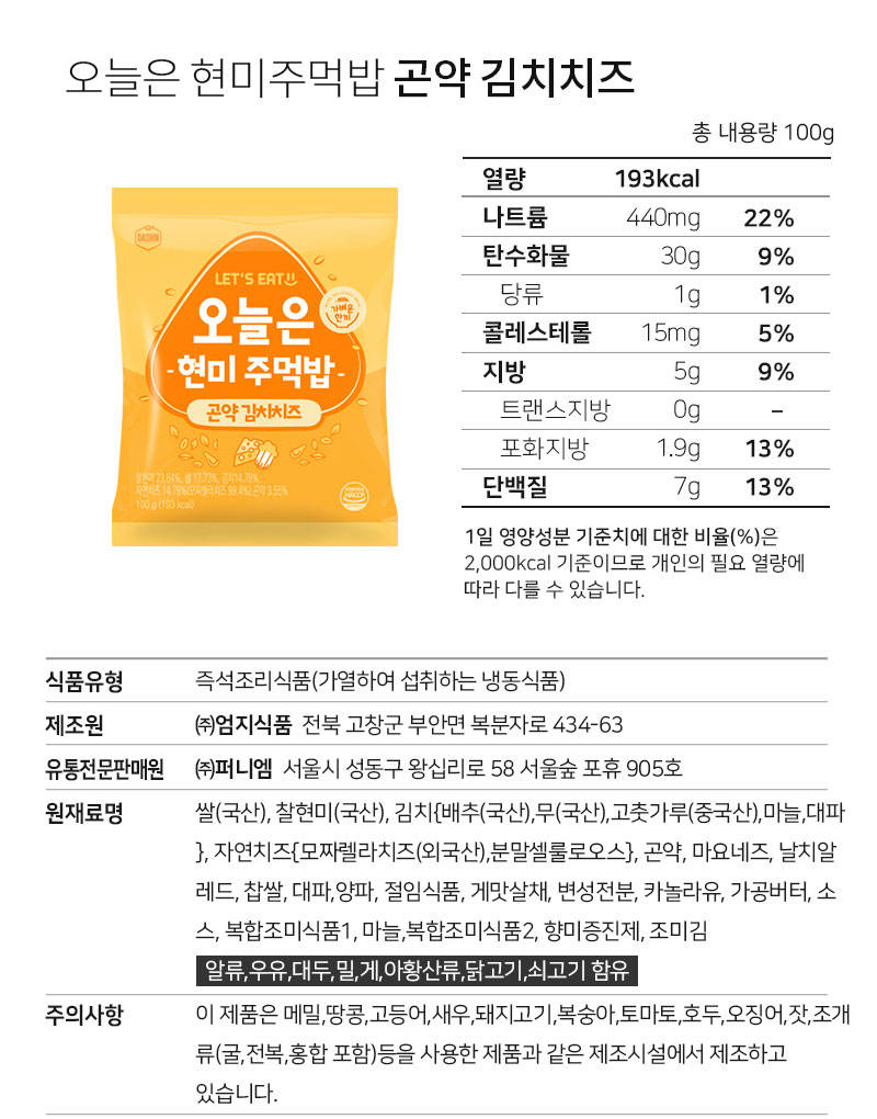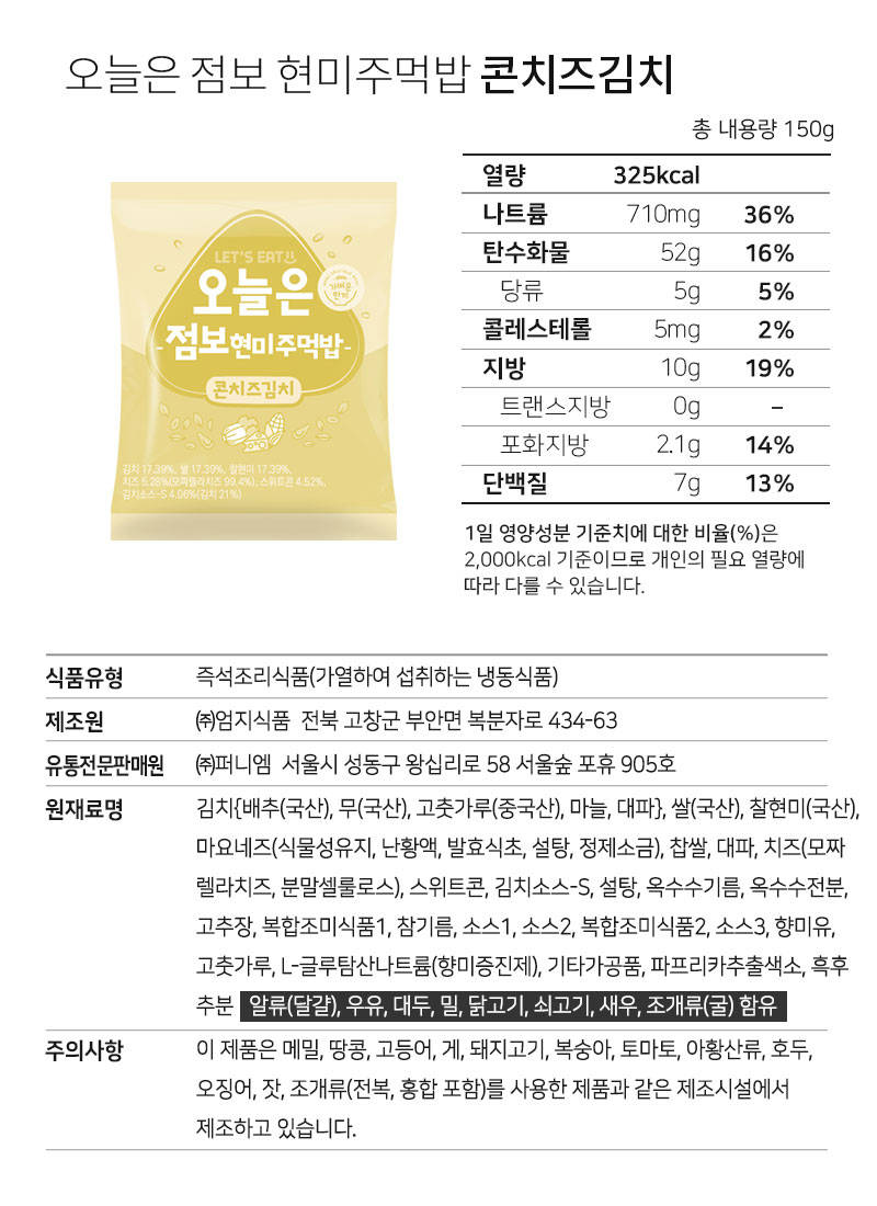 점보 현미 주먹밥 중에 콘치즈김치 최애맛이에요!! 한끼로 먹을 땐 간단한 아침으로 먹기좋지...