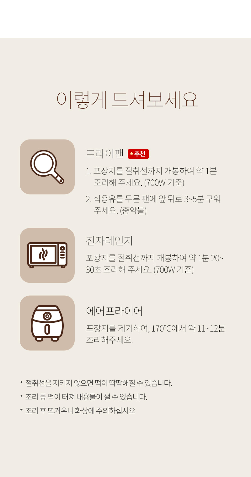 ※식품의 특성상 고객 안전을 위해 재판매하지 않고 폐기하며, 이로 인해 신선/냉동식품을 포함해 모든 식품은 단순변심에 의한 교환, 반품이 불가합니다.