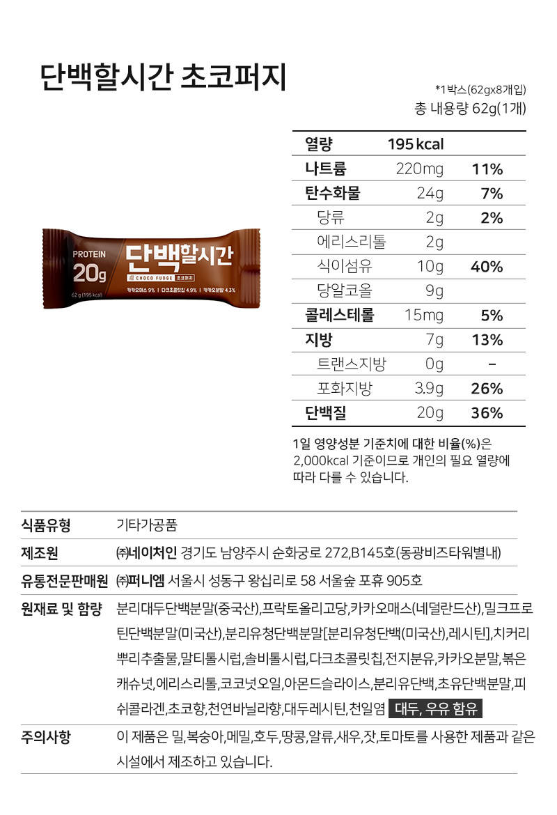 (단백질20g)단백할시간 단백질바 카카오 1+1+1 (총3팩)