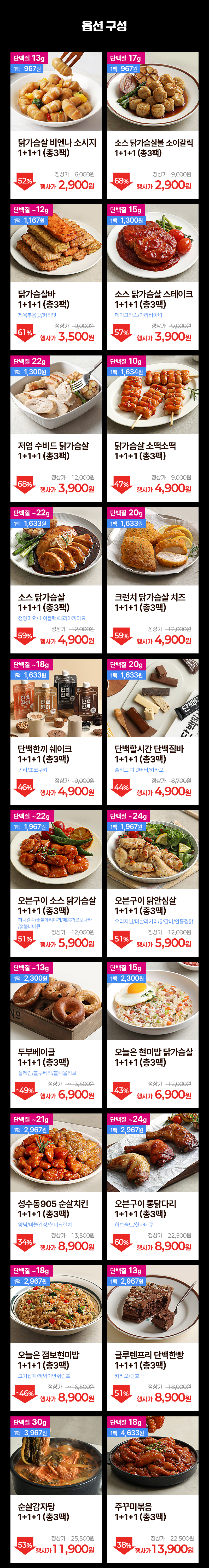 (단백질20g)순살양념치킨 1+1+1 (총3팩)