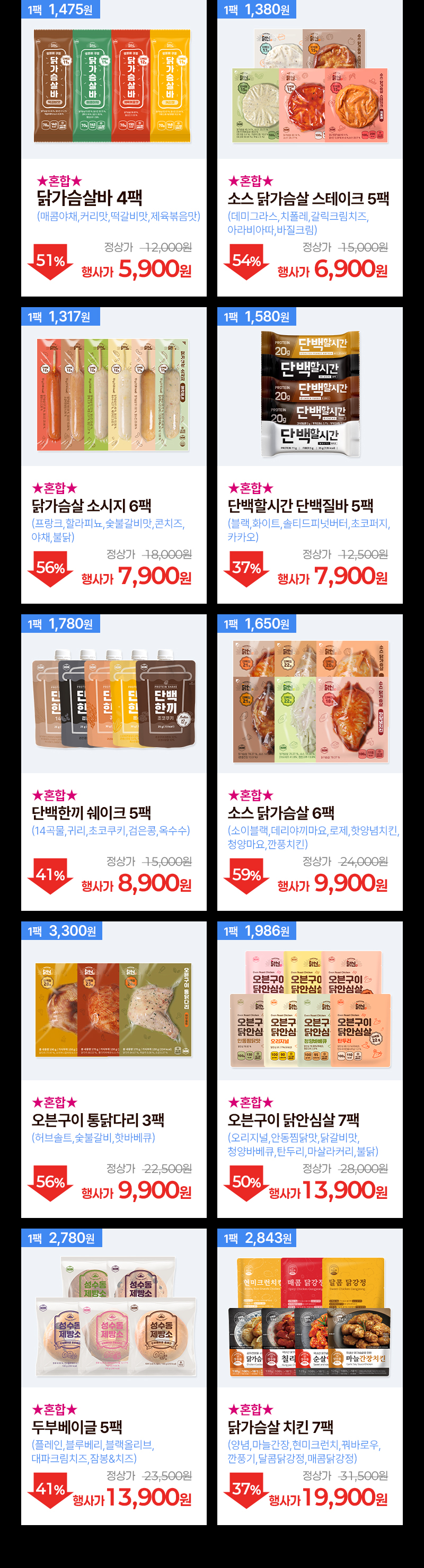 (단백질24g)오븐구이 닭안심살 닭갈비 1+1+1 (총3팩)