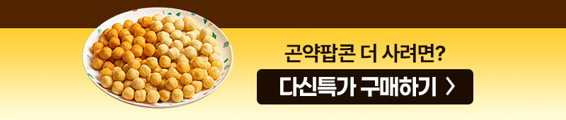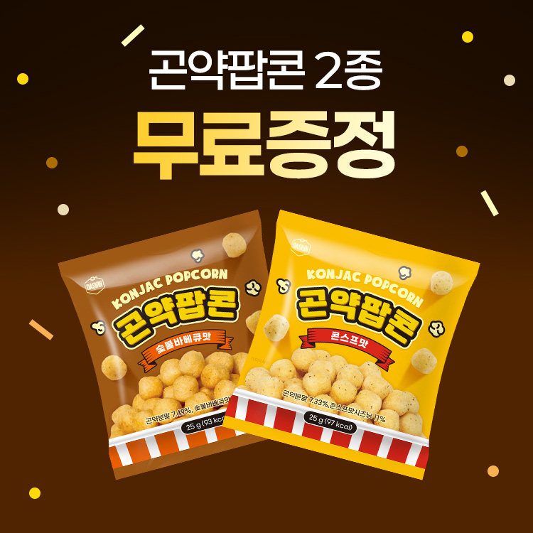 곤약팝콘 숯불바베큐:총 내용량 25 g (93 kcal) 나트륨 146 mg (7%) 탄수화물 20 g (6%) 당류 1 g (1%) 식이섬유 2 g (8%) 지방 1 g (2%) 트랜스지방 0 g 포화지방 0 g (0%) 콜레스테롤 0 mg (0%) 단백질 2 g (4%)콘그릿츠(외국산:호주,브라질,러시아 등)43.2%,현미가루(국내산)21.8%,팜올레인유(말레이시아산),숯불바베큐맛시즈닝9%[미립당,정제소금(국내산),기타설탕(원당,옥수수전분),그레이비스엔(그레이비스베이스분{우육(호주산)},비프플레이버분말)],곤약분말(중국산)7.49%,정제소금,d-토코페롤(혼합형) [우유,쇠고기,대두,닭고기,밀,돼지고기 함유]