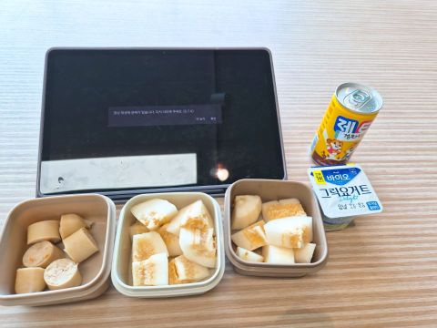 담백하면서도 치즈맛이 풍부하게 나서 다른 걸 같이 먹을 필요는 없어요 다만 식단 중일 때 곁들일 음료가 마땅찮아 커피도 탄산음료도 부담스러울 때 발포비타민 한잔과 함께 먹으니 딱 상큼하고 맛있어요